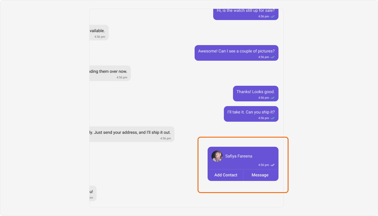 - Header view: This displays the sender’s name and is especially useful in group chats where multiple users are sending messages.